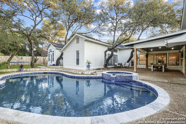 Welcome to this beautifully updated one-story home in the highly sought-after Hunters Creek community. Offering an ideal blend of comfort, functionality, and resort-style living, this property features a sparkling pool with adjoining spa, a large covered patio, and generous backyard green space perfect for outdoor dining, play, or entertaining. A separate dog run provides added convenience for pet owners. Inside, the home boasts tile and wood flooring throughout-no carpet-creating a clean, stylish, and low-maintenance living environment. The spacious living room is filled with natural light and flows seamlessly into the separate formal dining room. The fully remodeled kitchen includes newer cabinetry, stainless steel appliances, and a large breakfast island in an inviting breakfast nook overlooking the backyard oasis. The primary suite offers private patio access and a serene retreat from the rest of the home. Two additional bedrooms share a well-appointed Jack-and-Jill bathroom with dual vanities. A unique layout provides a secondary primary bedroom with its own bathroom, ideal for multigenerational living or extended-stay guests. An additional flex room with outside access can function as a fifth bedroom, office, or second living area, offering versatile options to suit your lifestyle. Additional highlights include a 2-car garage, thoughtful updates throughout, and excellent storage. The location is unbeatable-just minutes from I-10, Loop 1604, premium shopping, top-rated restaurants, and highly regarded schools. This exceptional home truly offers the perfect combination of comfort, convenience, and lifestyle. Don't miss the opportunity to make it yours!