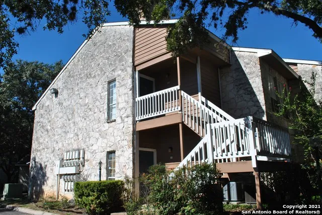 Comfortable 1 bedroom 1 bath end unit on the second floor. Wood burning fireplace in living room with skylights in the tall ceiling. Oversized balcony overlooks the pool area and has additional storage. Bedroom has 2 walk in closets. Pets on case by case basis under 25lbs. Rent includes condominium fees and use of common areas and pool. Close to UTSA, new HEB and LaCantera Mall.
